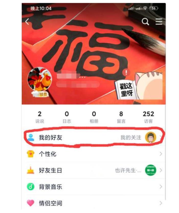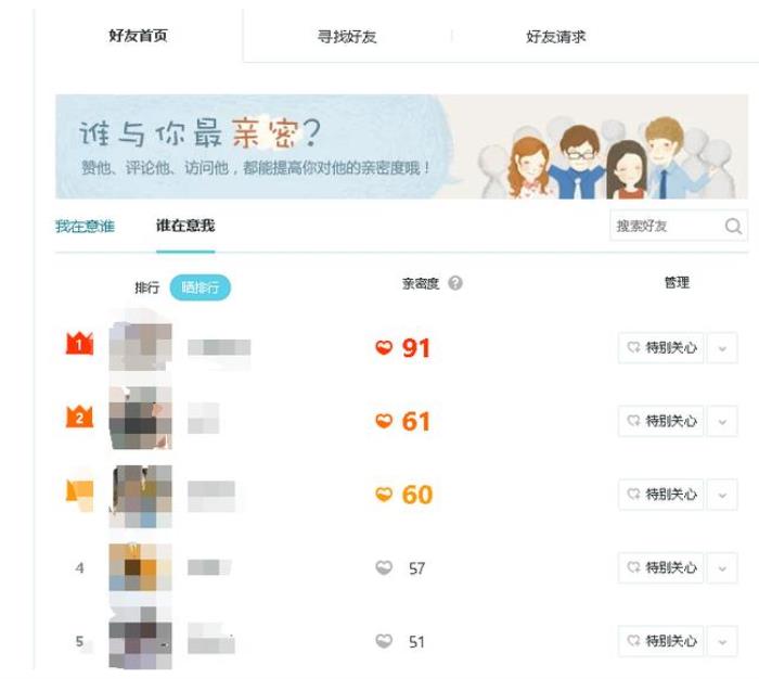 进入QQ空间之后,点击上面的好友,这时候我们通过下面图片就能看到都有哪些好友特别关心我们。
