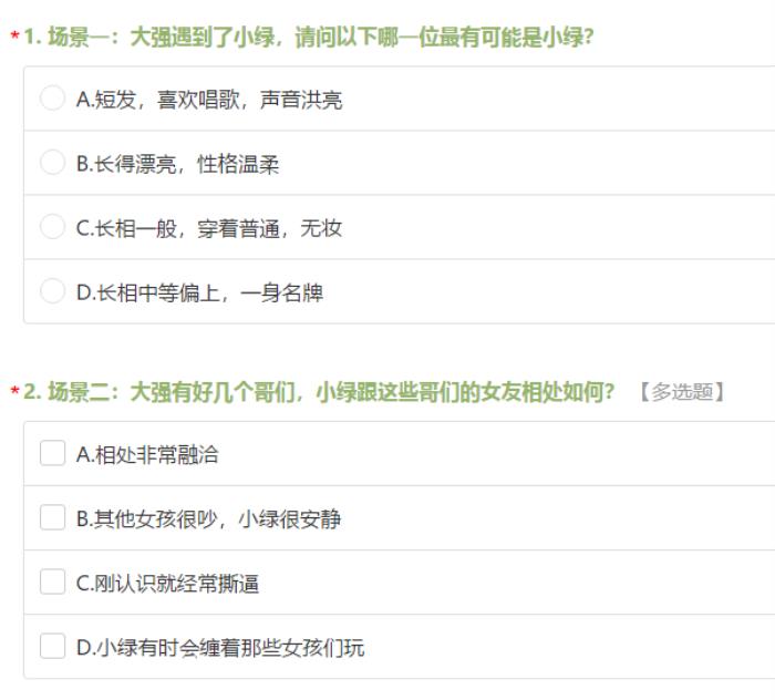 查看了答案解析之后,我又反复琢磨,怎么感觉这些答案和小绿有点像。平时我都没太留意,别人说她不好,我也不理会。因为只要我觉得她好就行。感情是两个人的事情,轮不到旁人说三道四。