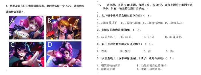我还特地准备了一份期末考试的试题,快拿去考考你们男朋友吧。