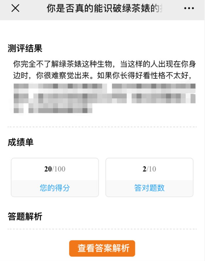 事情的转折在上周五,我的微信群聊都在转发“识破绿茶婊招数测试”。
