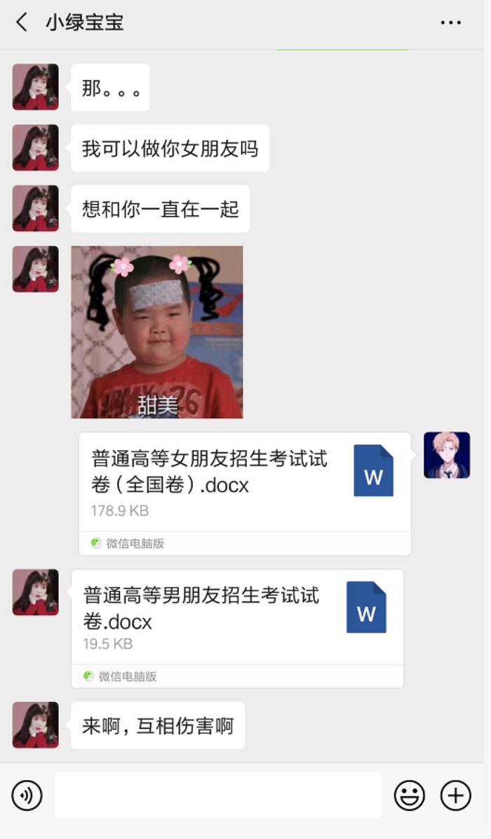 看都看到这里了,先别走,和你们说说”普通高等男/女朋友招生考试试卷(全国卷)”和“识破绿茶婊招数测试”这3份内容。