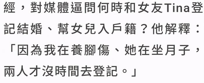 2005年任贤齐的大女儿出生,记者逼问任贤齐何时与女友登记结婚、帮女儿入户籍,任贤齐只解释双方都没时间去。