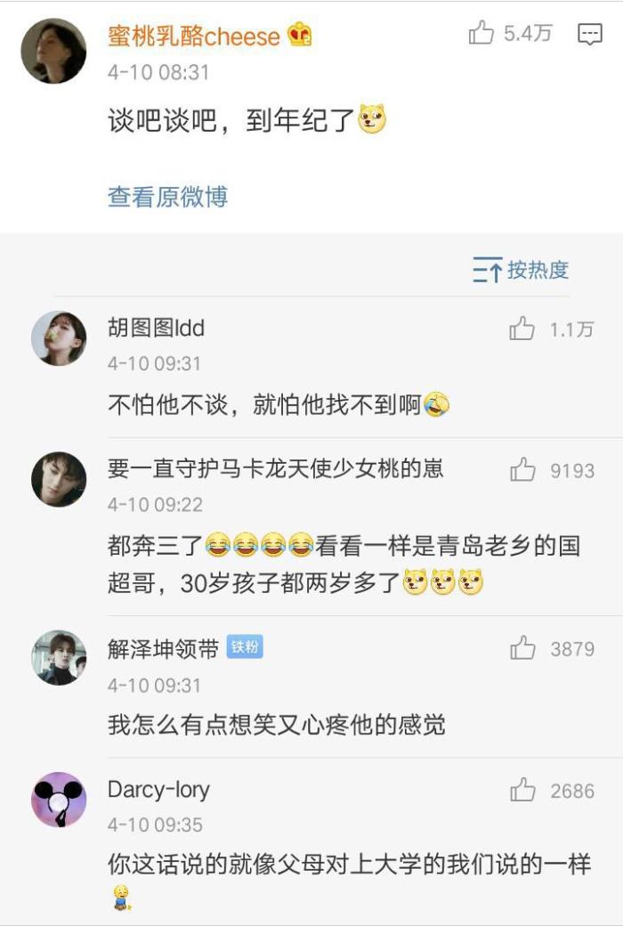 对于黄子韬的这一想法,网友纷纷留言:谈吧谈吧,也到年纪了......