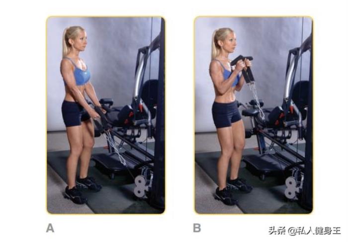 整个动作期间双臂保持稳定,朝着肩部方向向上拉动闭环手柄,然后在动作的最高位置时收缩肱二头肌。沿反方向慢慢恢复至起始姿势。