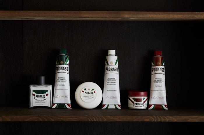 PRORASO剃须套装的吸引人之处不仅在于顺滑高效的实用体验,还在于其融合了独特的时尚包装。简单的红色、白色和绿色让人联想到五十年代复古海报中的经典好莱坞风格,而无有机色素、对羟基苯甲酸酯的配方则减少了肌肤收到刺激的几率。