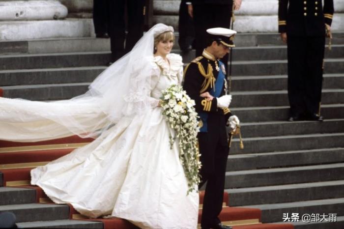 戴安娜王妃这场婚礼有多隆重呢?大卫和伊丽莎白为她设计的价值15万英镑的象牙真丝塔夫绸礼服,包括蕾丝、亮片、手工刺绣和10000颗珍珠在内,并且还专门为这场婚礼用了25英寸的车,是皇家婚礼历史上最长的车。