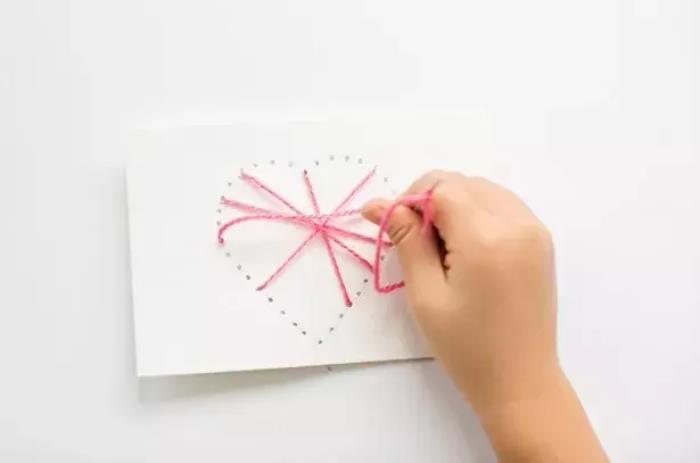 毛线是孩子们做手工最常用到的工具之一,刚刚做完毛线爱心,接着我们再用毛线做个贺卡吧!
