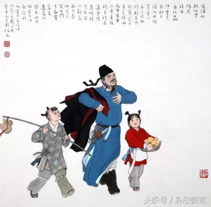 呼童烹鸡酌白酒,儿女嬉笑牵人衣。