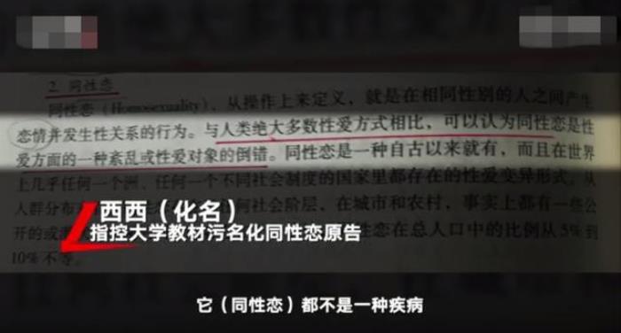 最近,“大学教材将同性恋归为心理障碍,女子控告出版社案件三次延期”上了热搜。这起案件起源于2016年,大学生西西(化名)发现暨南大学出版社出版的《大学生心理健康教育》一书中,将同性恋归类到性心理障碍,觉得很愕然。而后以产品质量纠纷为由起诉该出版社以及书籍销售方某网购平台。该出版社的新版教材进行了修订,将同性恋归为性指向障碍,但旧版教材“质量鉴定结果”依然没有落实。西西近期申请了第三次延期审理,目前看来还没有结案的希望。