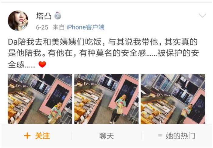张芊芊经常在自己的微博上面发一些关于儿子Dida的事情,发的微博有的是晒给Dida拍的帅气的照片,有的是在记录Dida的成长过程。