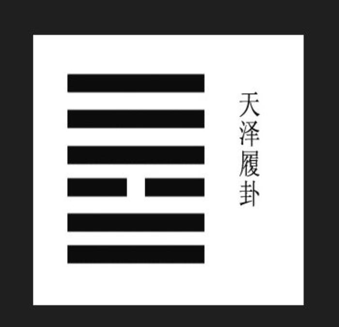 这个卦外卦是乾卦,内卦是兑卦。乾卦是天,兑卦是沼泽。天在上,沼泽在下,上下尊卑,分的很清楚,所以是有礼数的象征。
