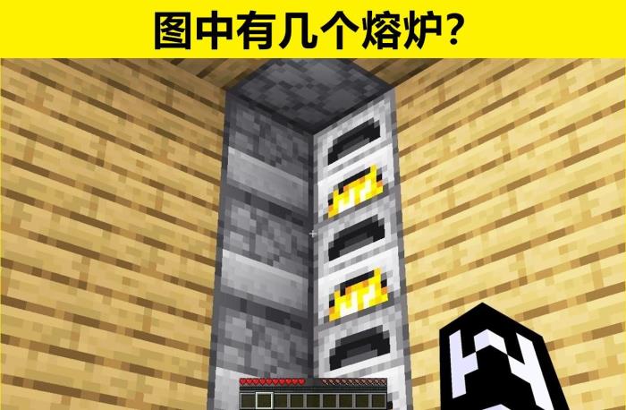 你可能会说:这难道不是3个么?然而这是Minecraft原生的最经典的视觉错误,曾被无数玩家拿来当作一个错觉“梗”。看上去仿佛是3个熔炉被放置在了一个木屋顶部的墙角,但总觉得好像是一个被改了材质的假贴图似的,熔炉的材质仿佛被拉伸了一般。
