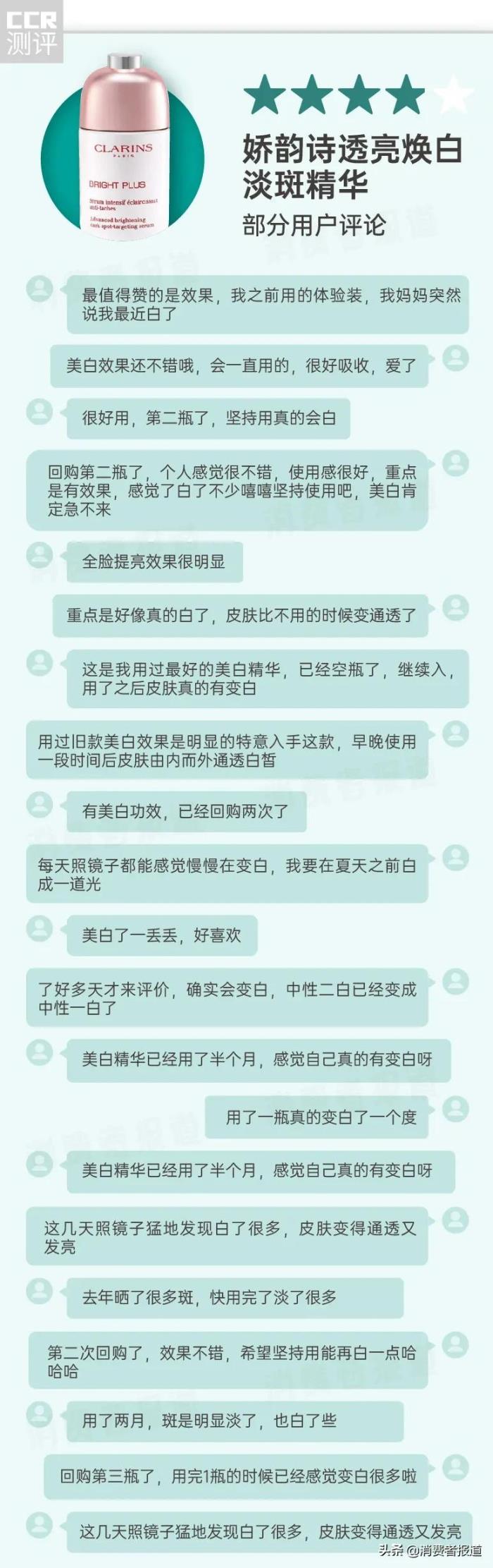 在电商评论中,其美白效果也得到了反映,类似“通透白皙”“白了一个度”的评价不少。