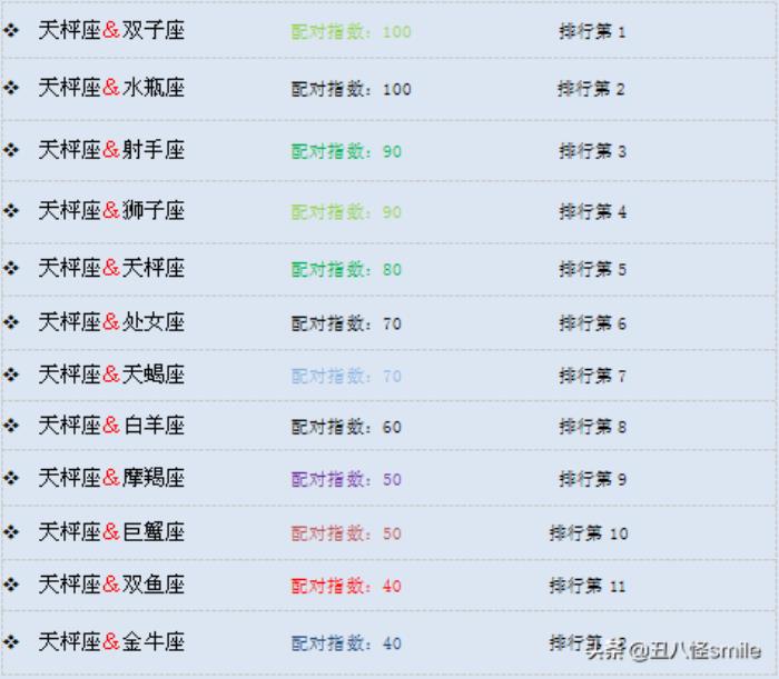1.天枰座最佳配对星座及排行