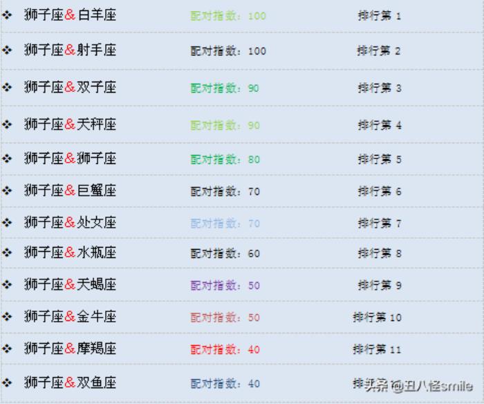 8.狮子座最佳配对星座及排行