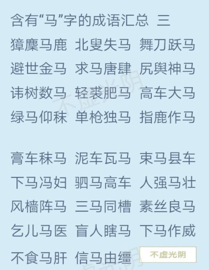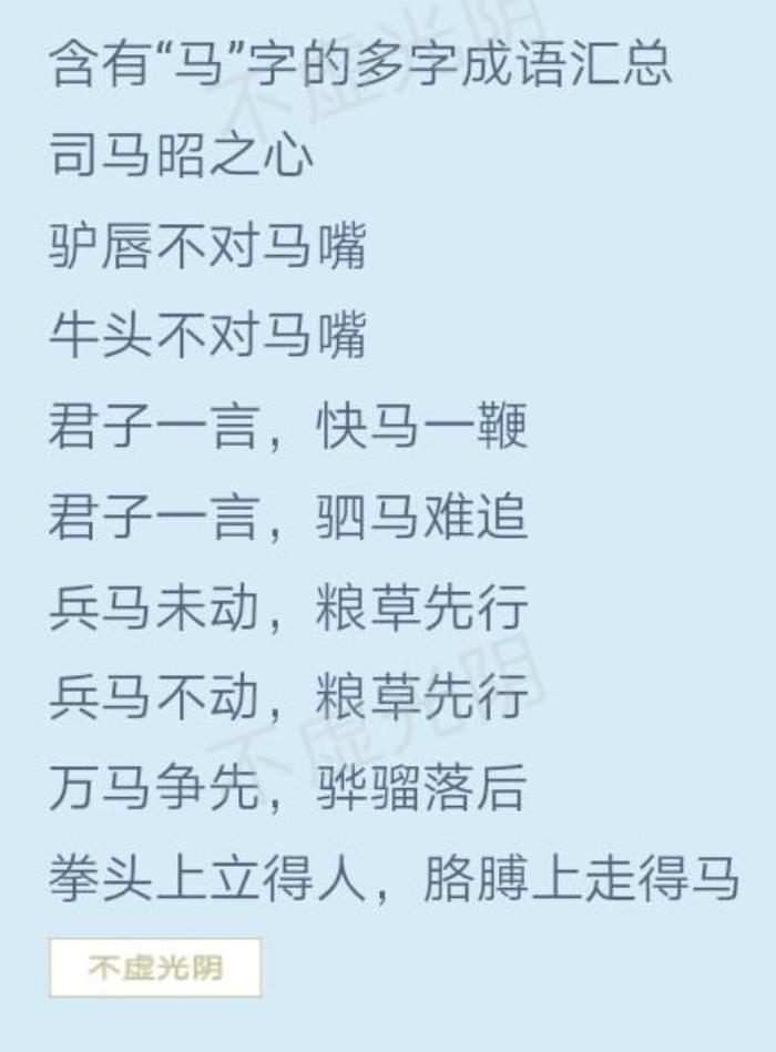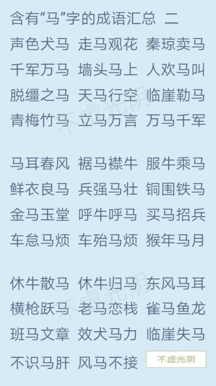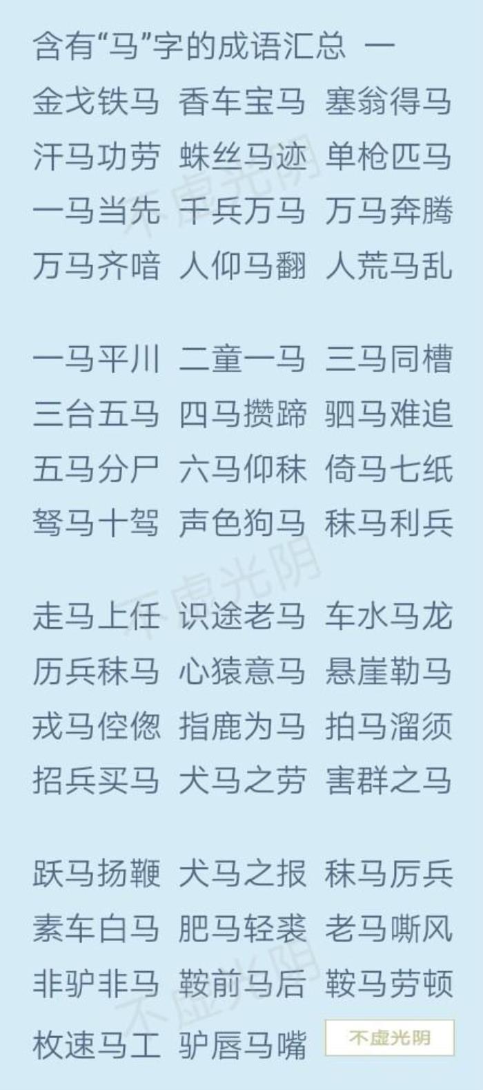 绝大多数含有“马”字的成语,都是含有褒义的,都是积极向上的,都能给人以力量。
