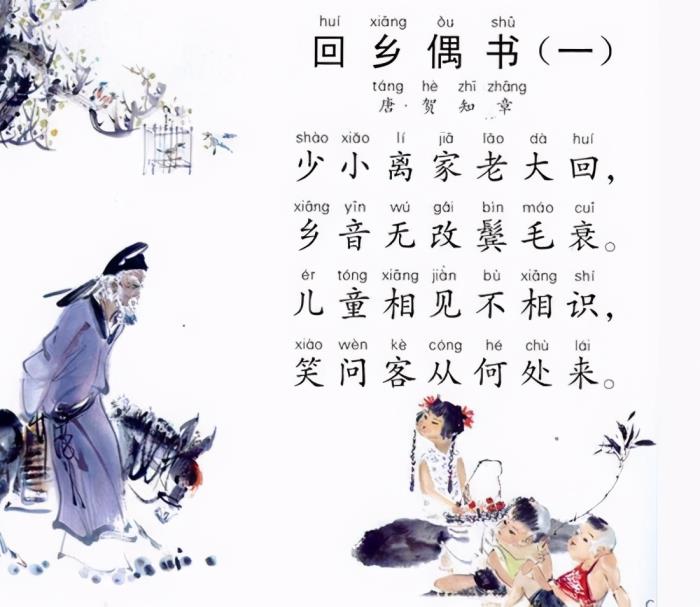 贺知章回到家乡安度晚年的时候写了一首诗: