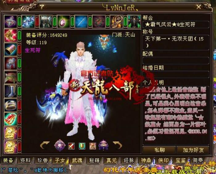 个人说明,一直是天龙老铁们展现自我性格的独特小窗口,每个人都各有不同。