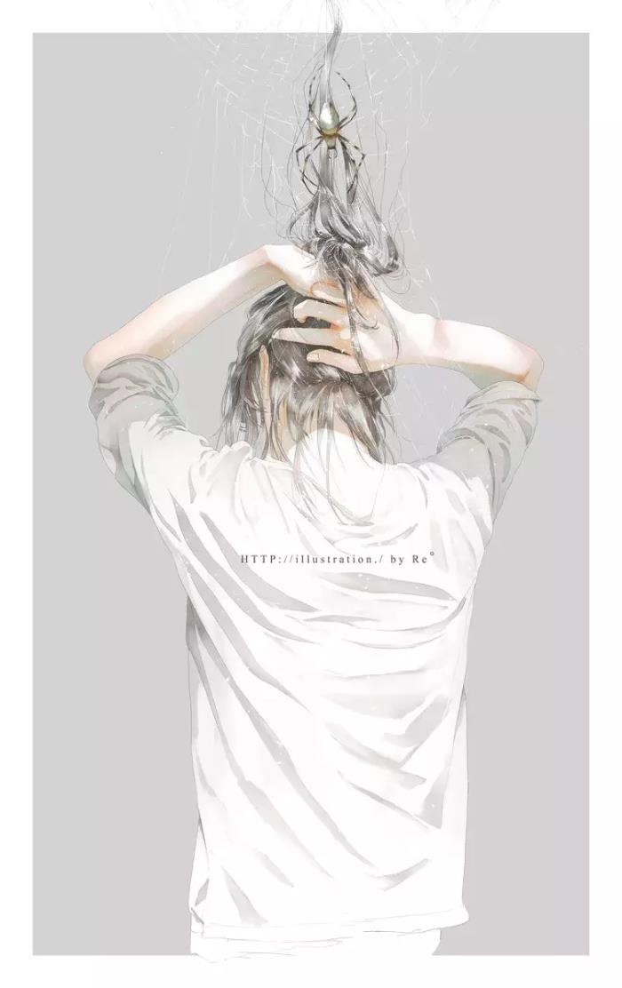 Re°的插画是我在快速浏览P站时,突然捕捉到的。特别的画风,不食烟火食的味道,颓废唯美的绽放,像一把利剑死死插入我的心脏。