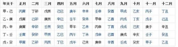算出年干支以后,可以根据年干支对照表格,得知月干支