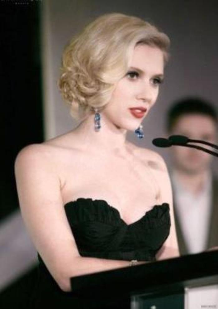 出席活动的斯嘉丽身穿一抹黑色裙子,黄色的头发搭配宝蓝色耳坠,把她白皙的皮肤展现的淋漓尽致,十分高贵奢华的感觉。