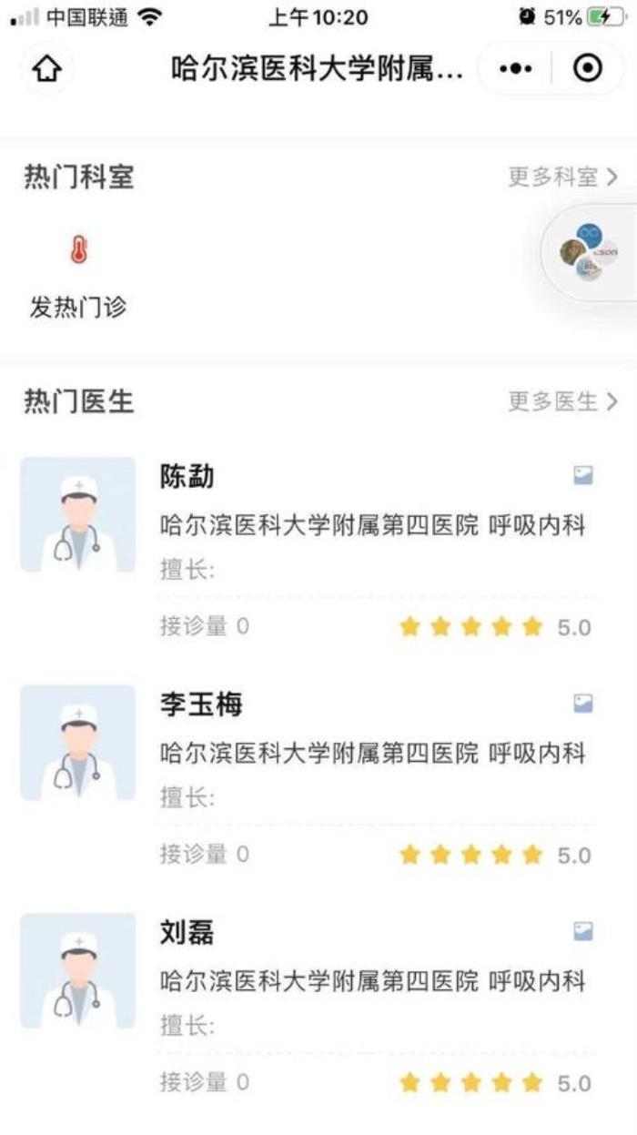 第一步:扫描二维码或搜索” 哈医大四院”进入公众号——选择挂号——选择发热门诊