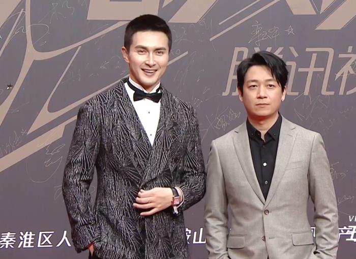 高伟光和潘粤明这对好兄弟一起走了红毯,两人都穿了西装,其中潘粤明的裤子跟杨洋的一样,显得很皱。
