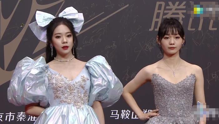 上次在红毯上扭来扭去拍照的张紫宁,这次是铁了心要当“在逃公主”,头上绑了非常大的蝴蝶结,相比之下旁边的段奥娟和许靖韵显得低调多了。