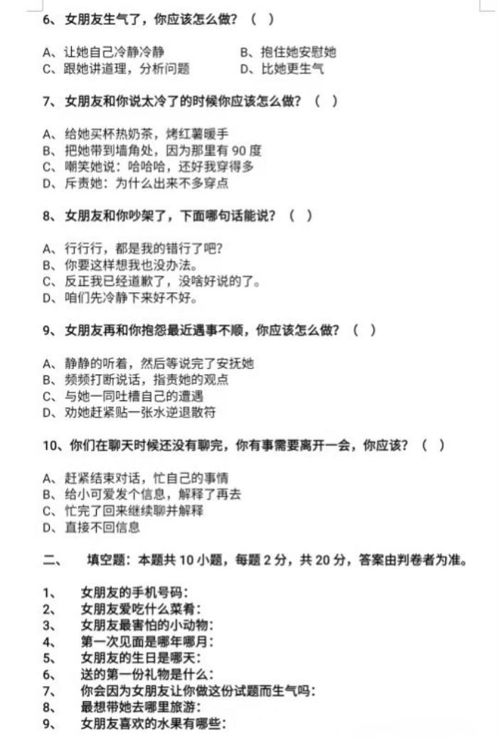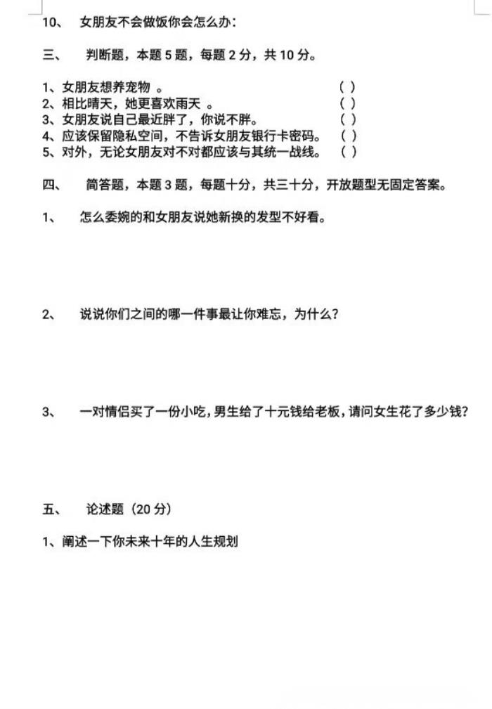 以上就是全国高等男朋友招生考试试卷图片分享。