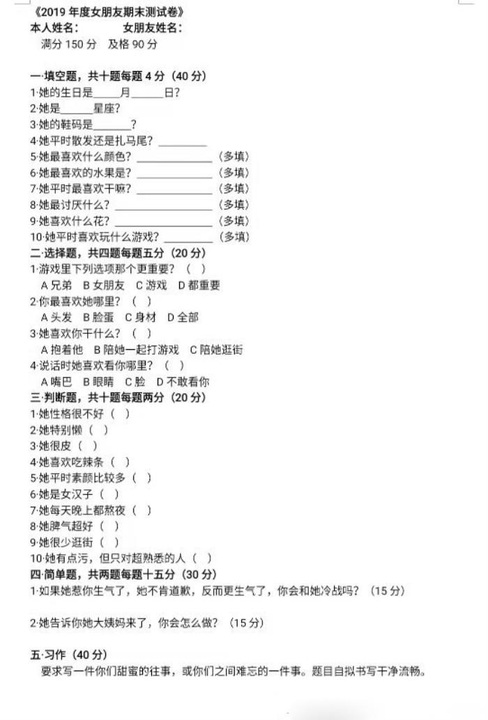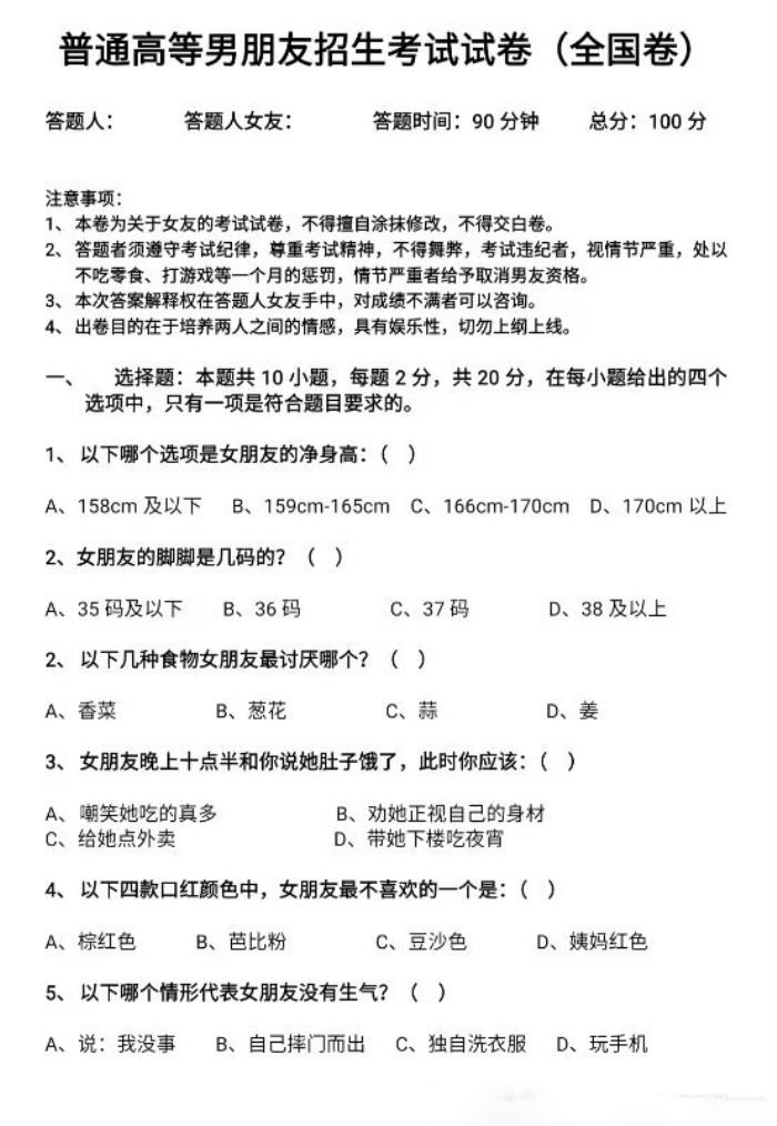 全国高等男朋友招生考试图片?招生考试涉及的方面很多,各行各业,各种学科,现在连谈恋爱也是需要分数了哦!今天小编整理了一组很有意思的全国高等男朋友招生考试图片,下面就快和小编一起看看吧!