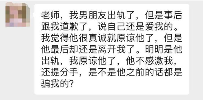 前两天,我接到一个姑娘(小陈)的咨询,她的男朋友出轨了,她原谅了对方,可最后男方还是选择了离开。