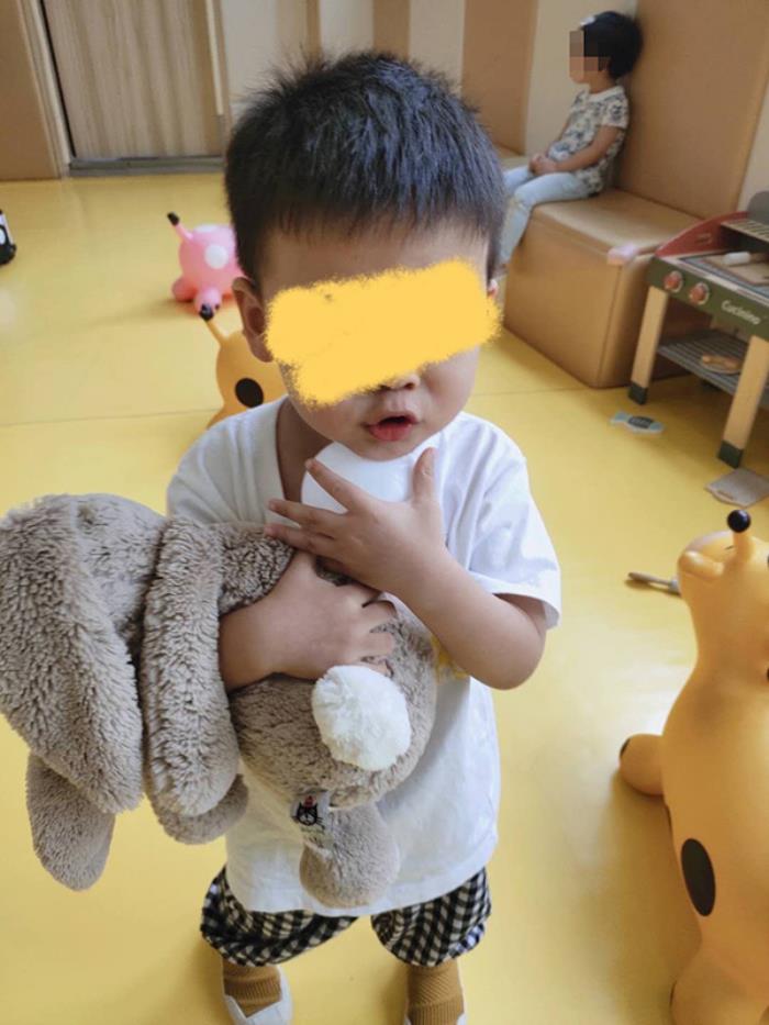 胡千筠的小孩刚上托班时,总抱着他的兔子玩偶
