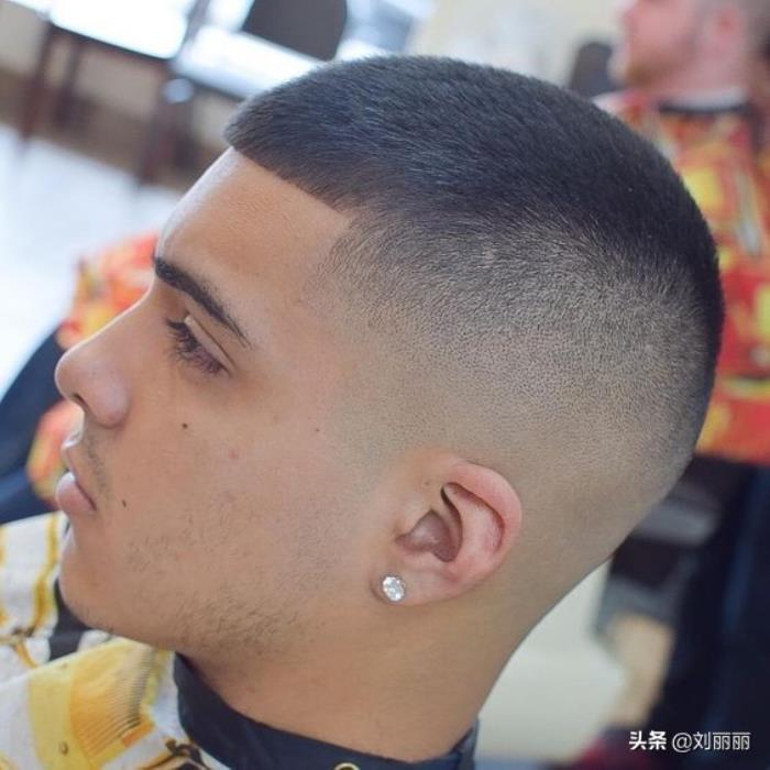 要是头型足够完美就可以大胆地尝试这种圆寸头发型了,周边头发可以修剪成这种青皮渐变的效果 ,前额发际线用刮刀刮出清晰的边线, 简单时尚免打理,十分的精神有型 。