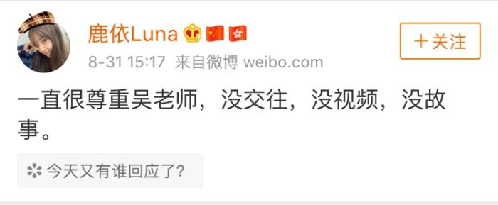 微博内容是:一直很尊重吴老师,没交往,没视频,没故事!