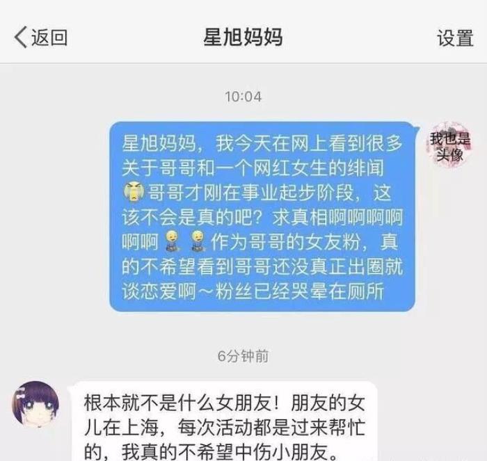 随后,有粉丝私信陈星旭妈妈,对方否认称:“不是女朋友,朋友的女儿在上海,每次活动都是过来帮忙,不希望中伤小朋友。”