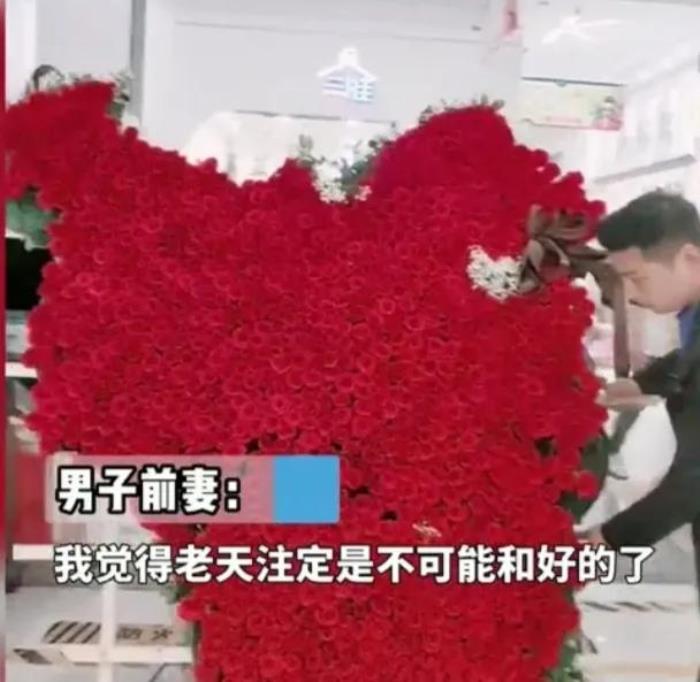 4月6日,在四川成都,一男子准备了巨型玫瑰心,打算去和前妻和好。