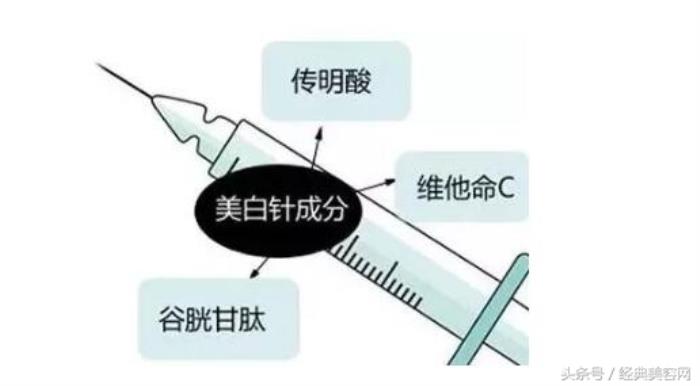 美白针的有效成分主要有三种:氨甲环酸、谷胱甘肽和维生素C。