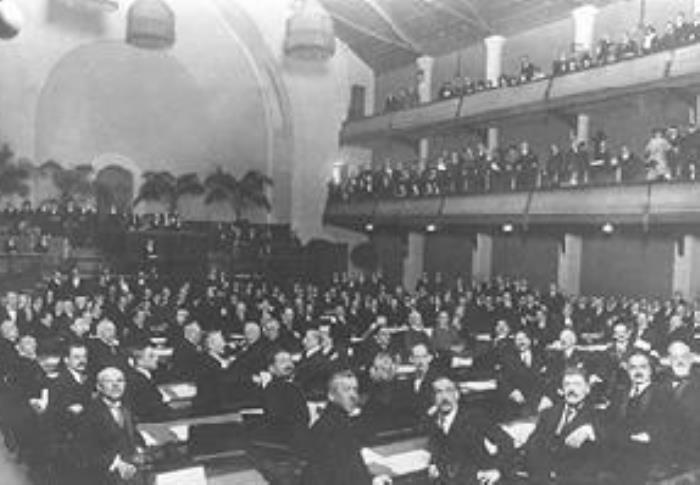 在一战结束后,美国积极参与了构建一个“解决国际争端,维持世界和平”的国际组织——国际联盟。但国联成立后,美国国会却在孤立派的影响下拒绝批准政府参加国联的法案。说来可笑,作为国联的缔造者之一,美国自己却不能参加国联。