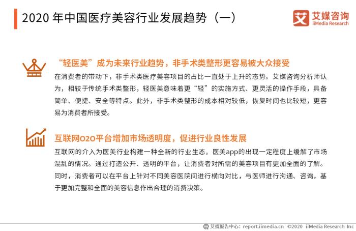 专栏中国医疗美容行业研究分析报告作者:艾媒咨询299币28人已购查看以上部分数据、内容参考来自艾媒研究院发布的《艾媒报告|2020-2021年中国美容美发行业细分领域及总体趋势研究报告》,下载完整高清PDF版本报告内容请点击下方“了解更多”
