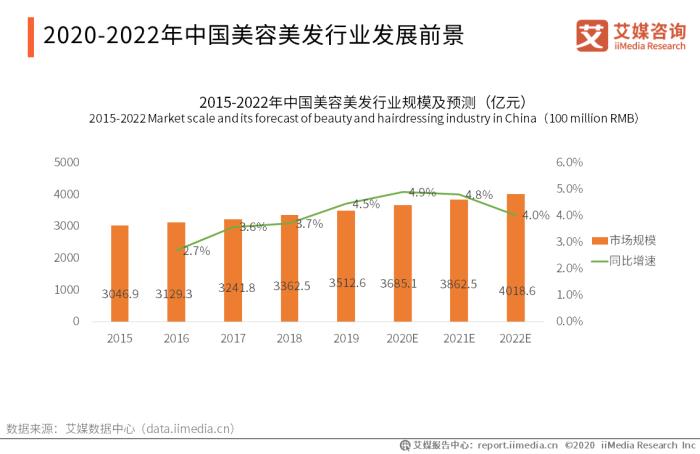 中国居民可支配收入的增长刺激消费欲望,享受类消费的比重不断提升。艾媒咨询分析师认为,预计未来五年内,中国美容美发行业市场规模将维持4.6%的复合增速增长,到2022年行业市场规模将突破4000亿元。