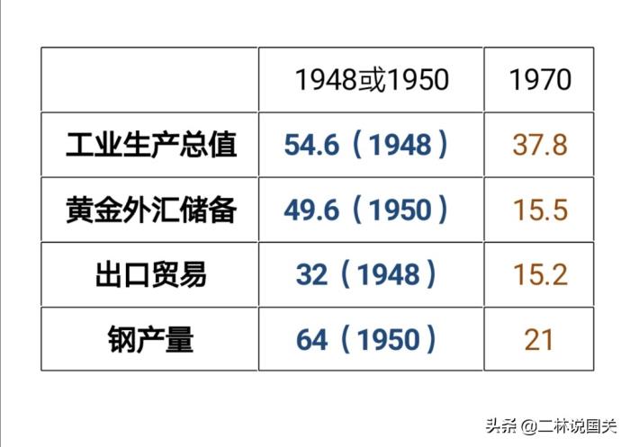 见插图4:1970年美国经济数据占资本主义世界之比重相比战后初期的变化: