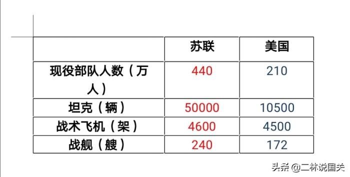 再来看看常规武器方面的对比,不看质量的话,苏联在1978年的常规军事力量远超美国。