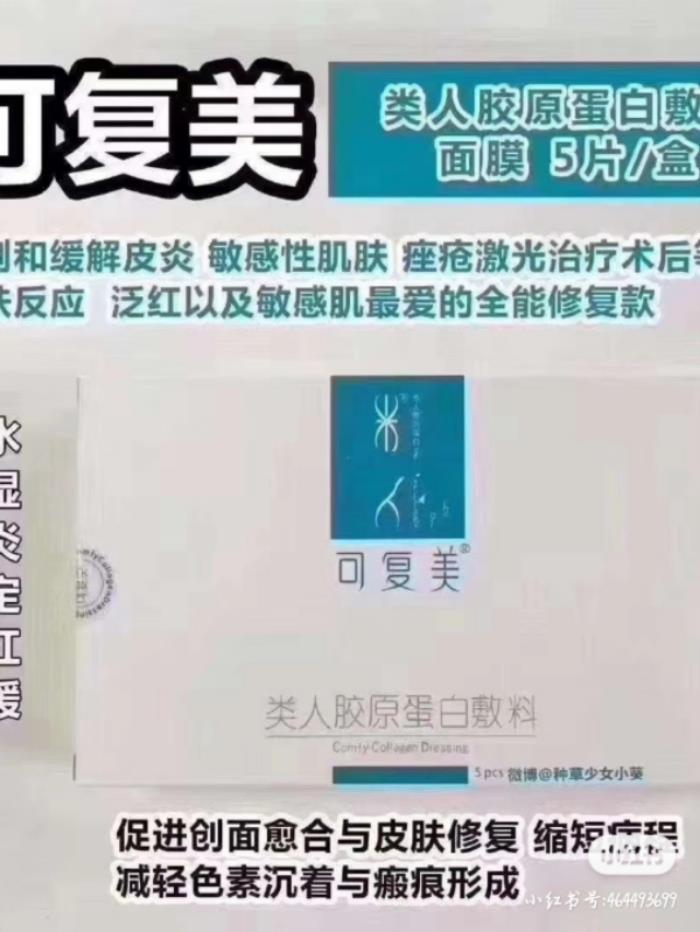 痘痘,过敏,红肿,干痒,脱皮,光电手术,水光术后常备胶原蛋白修复敷料。