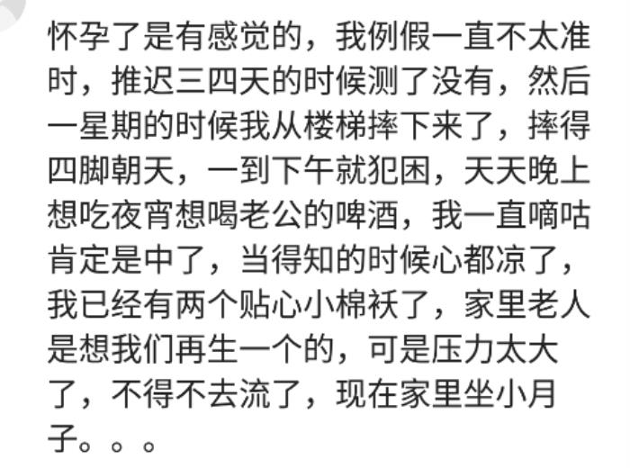 我妈之前不小心流过两胎,后来去泰山观音庙求子,一路上又吹风又喝酒怎么怎么样的,回来发现怀孕俩周了。