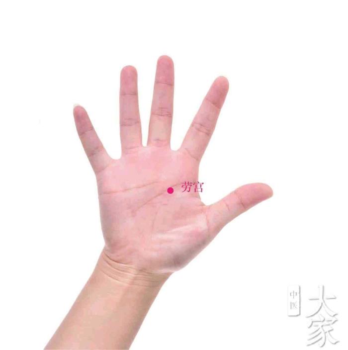 取劳宫穴。用拇指按压1-3分钟,以感觉酸胀为宜。此法适用于有焦虑、烦躁情绪的患者。