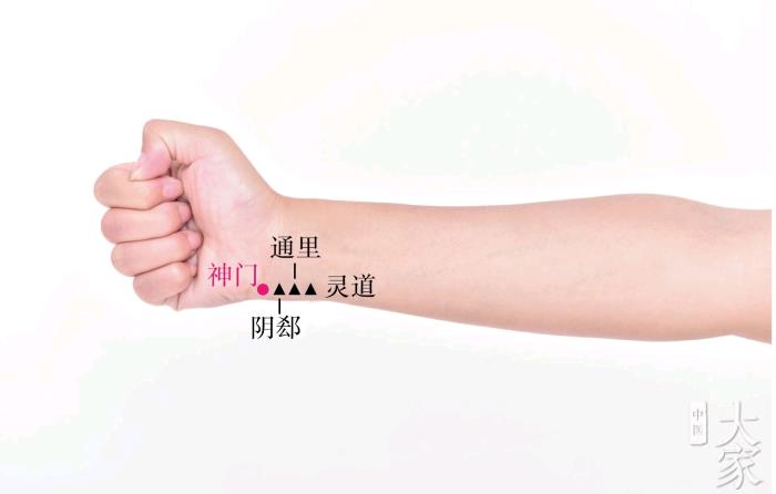 4.按摩保健法(1)手部按摩取神门穴。用拇指按揉1-3分钟,以感觉酸胀为适。此法适用于焦虑及其焦虑引起的头痛等疾病。