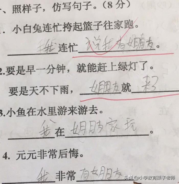 小学生由于年龄小,充满童真童趣,所以在老师批改作业本和试卷时,经常能读到小学生,尤其是低年级小学生的“惊人”答案。让老师直呼:快要笑晕了!这孩子是啥脑回路?不按常理出牌,写这样搞笑的答案!而妈妈听了想拿棍子打人!