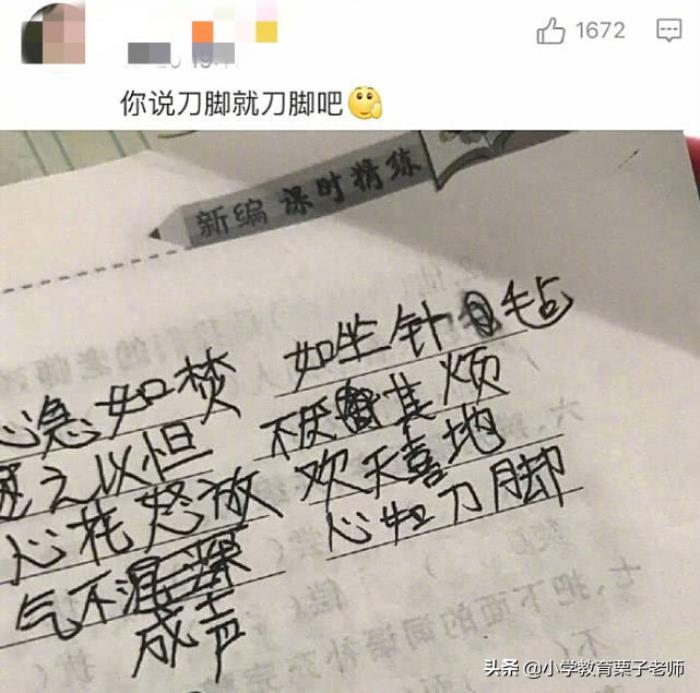 “持之以恒”、“泣不成声”、“心如刀绞”,这位同学,请问你的字词基础掌握太弱了吧!老师大概是习惯了,无奈地表示:你说刀脚就刀脚吧!