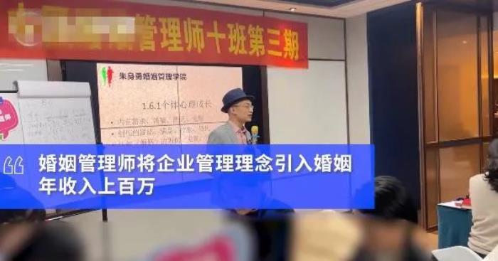 这两天,一则2分钟不到的短视频刷屏网络,标题是“上海婚姻管理师年薪百万”。短视频介绍说,上海某机构朱姓“婚姻管理师”将经营管理的理念引入到婚姻中,形成了一套“婚姻管理”系统,还开了婚姻咨询课程。