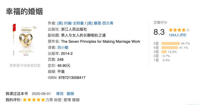 本书作者约翰·戈特曼有一个特别神奇的本领,就是他看一对夫妻交流5分钟,就能判断他们将来会不会离婚,这不是争吵的5分钟哦,而是夫妻正常说话的5分钟。神吧!关键是戈特曼的准确率高达91%。